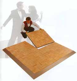 This versatile floor may be used indoors or outdoors, on a patio or deck and even on the grass under a tent. Note: The average space requirement is 9 sq. ft. per dancer. Example: A 15' x 15' floor provides space for 25 dancers. Installed with a border trim on all edges. |